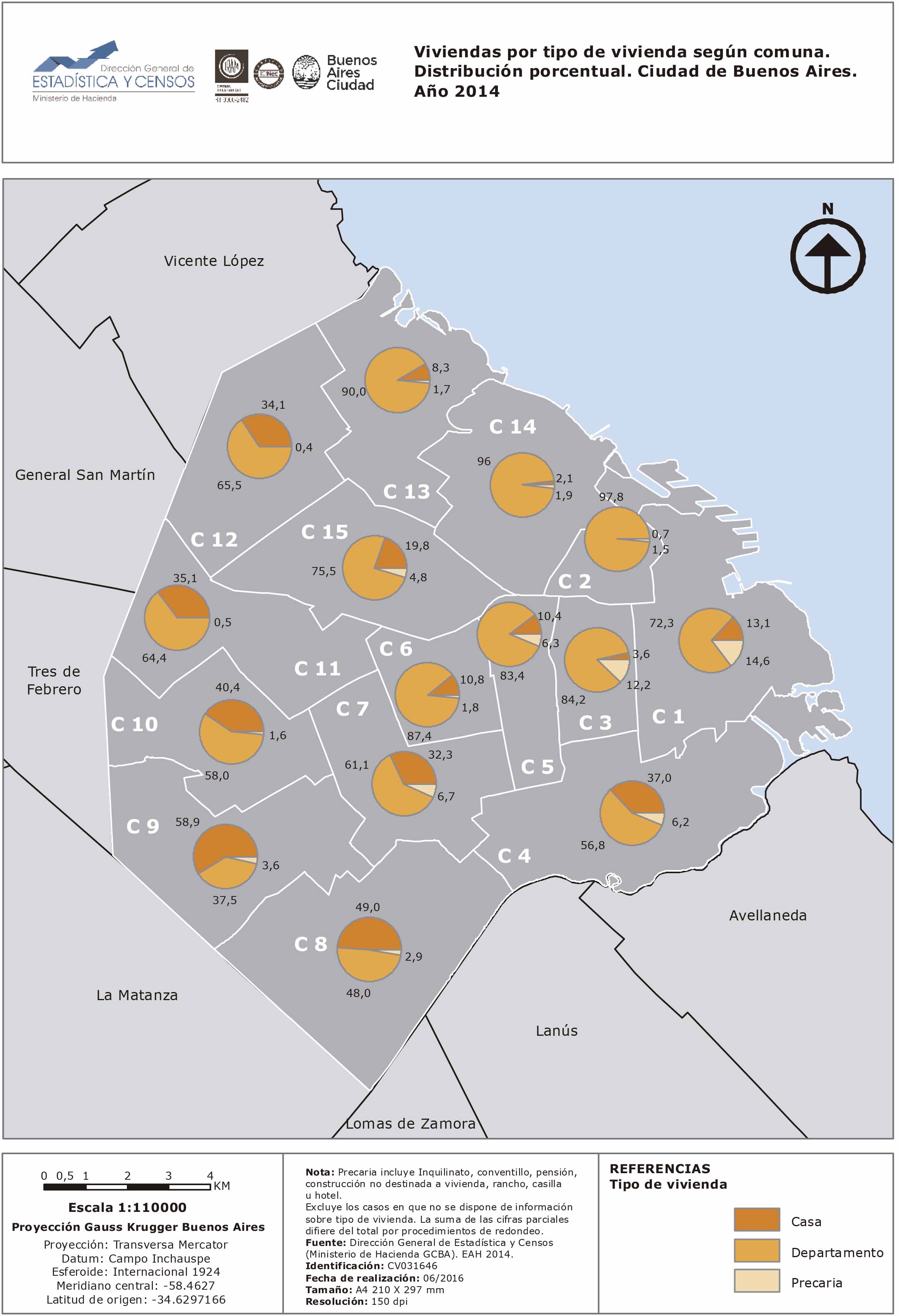 Viviendas por tipo de vivienda según comuna. Distribución porcentual. Ciudad de Buenos Aires. Año 2014