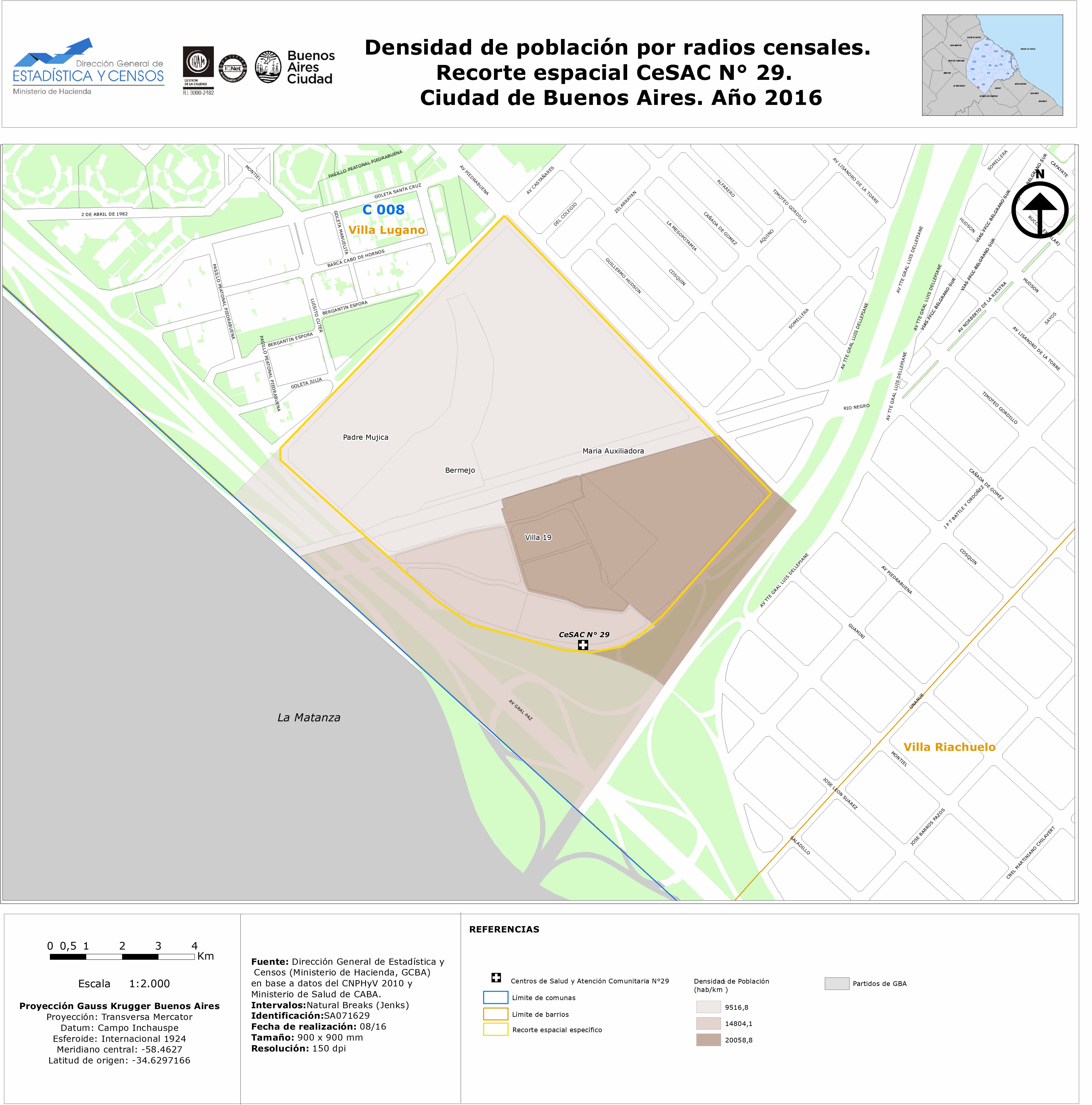 Densidad de población por radios censales. Recorte espacial CeSAC N°29. Ciudad de Buenos Aires. Año 2016