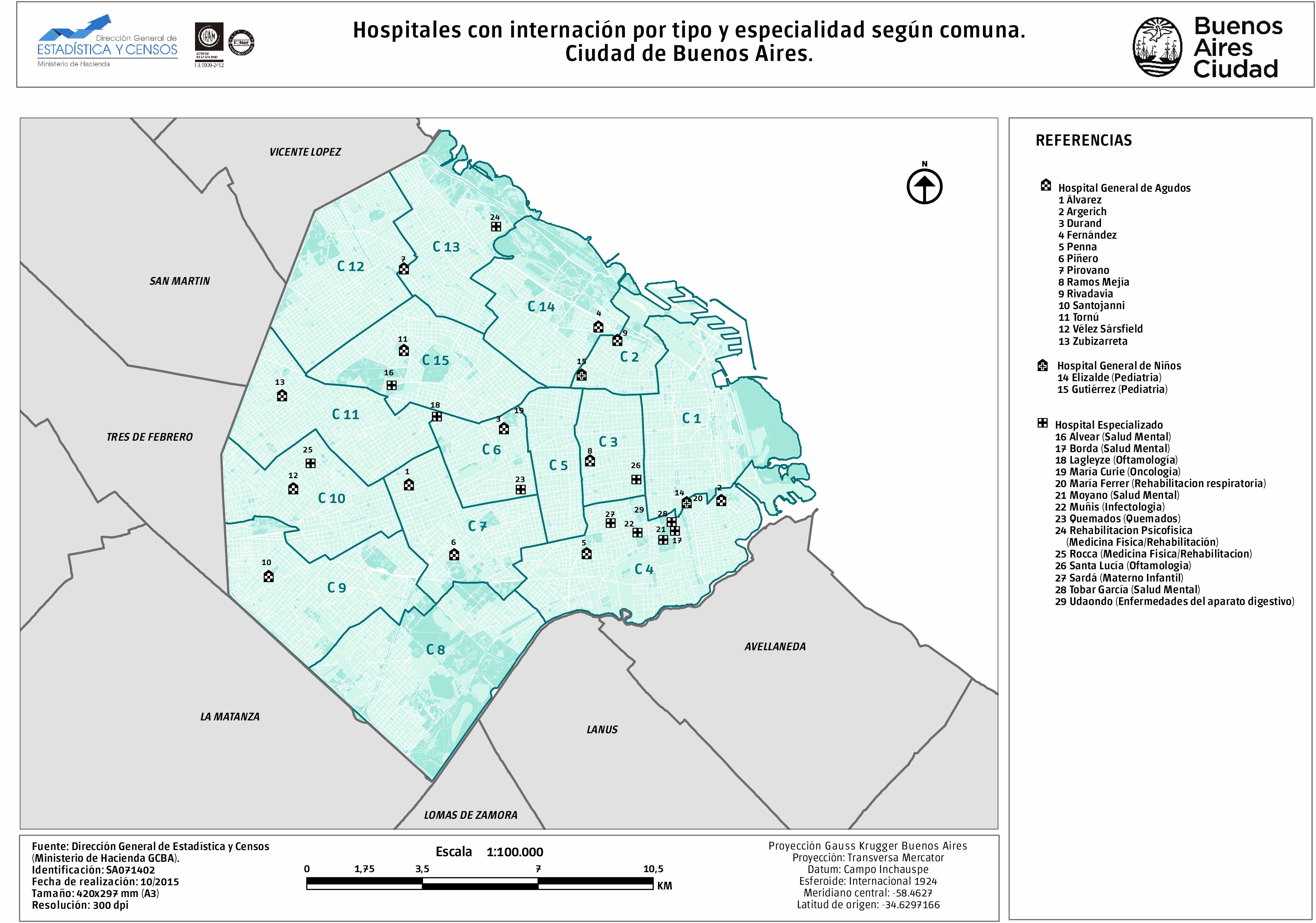 Hospitales con internación por tipo y especialidad según comuna. Ciudad de Buenos Aires