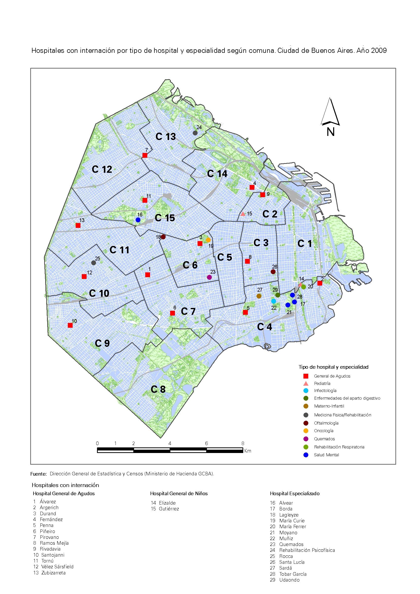 Hospitales con internación por tipo de hospital y especialidad según comuna. Ciudad de Buenos Aires.