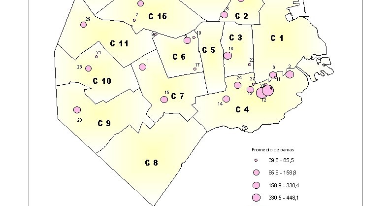 Promedio de camas disponibles en hospitales del Gobierno de la Ciudad de Buenos Aires según comuna. Ciudad de Buenos Aires. Año 2008