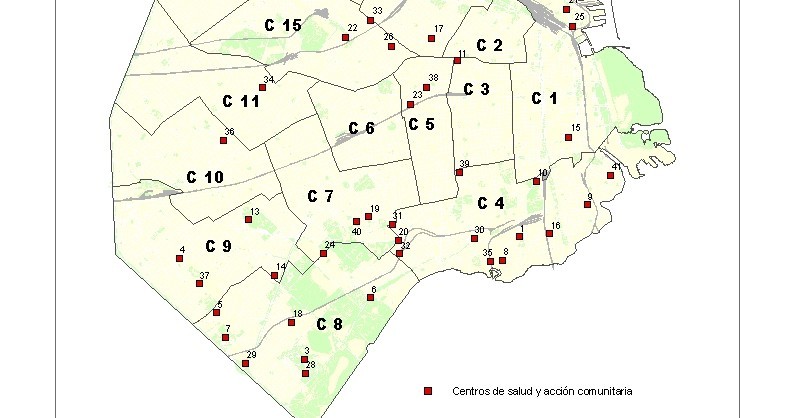 Centros de salud y acción comunitaria (CeSAC) según comuna. Ciudad de Buenos Aires. Año 2008