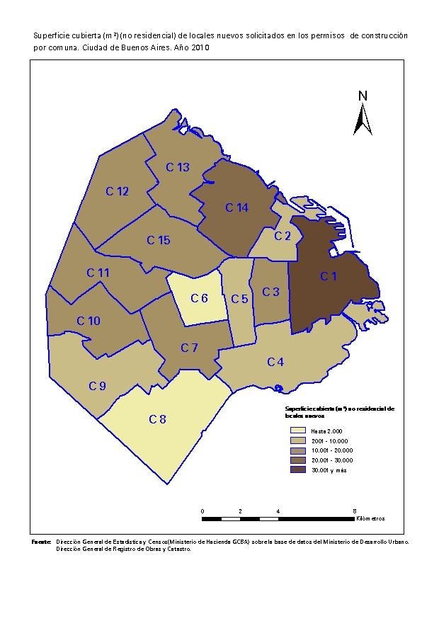 Superficie cubierta (m2) (no residencial) de locales nuevos solicitados en los permisos de construcción por comuna. Ciudad de Buenos Aires. Año 2010