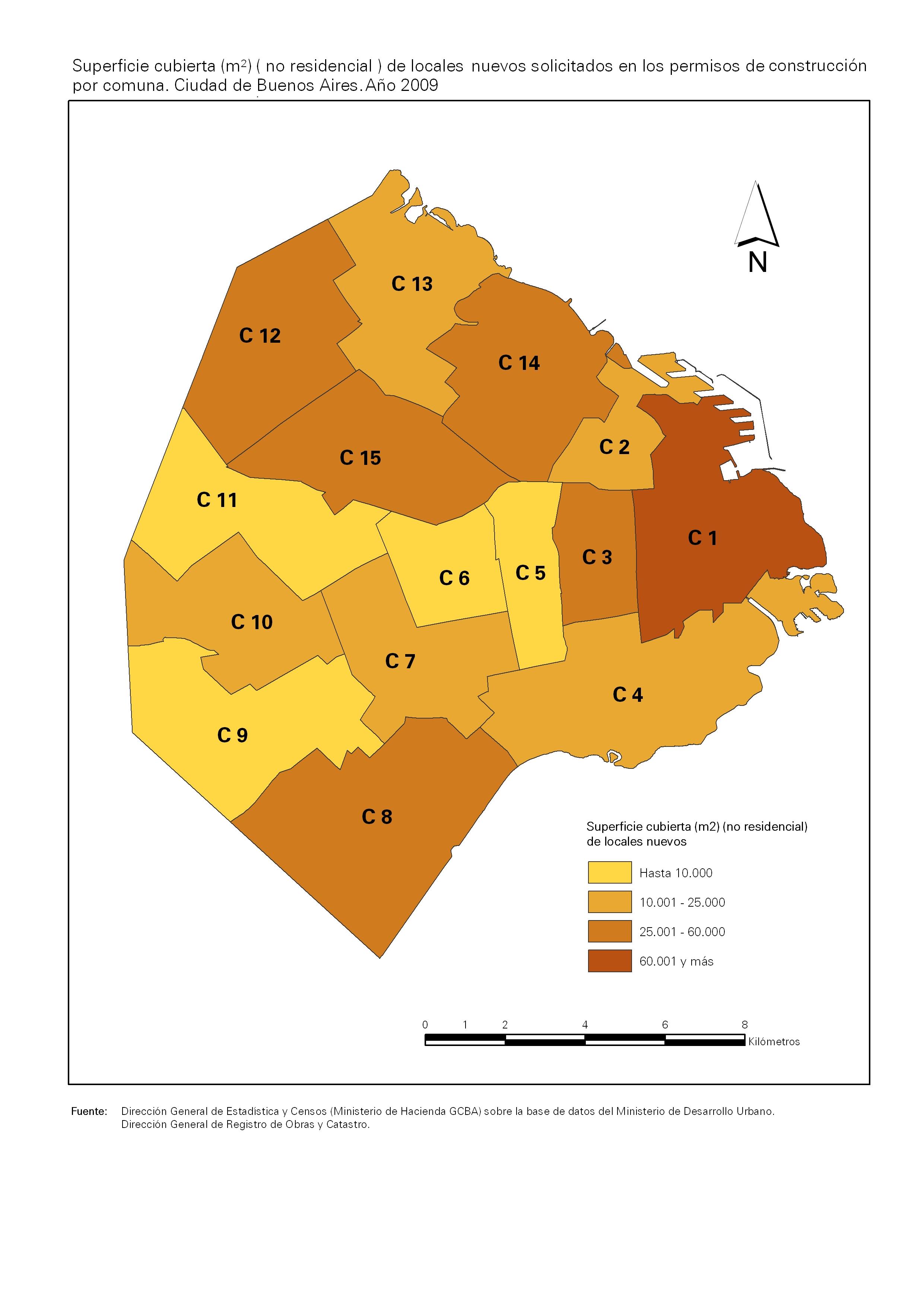 Superficie cubierta (m2) (no residencial) de locales nuevos solicitados en los permisos de construcción por comuna. Ciudad de Buenos Aires. Año 2009