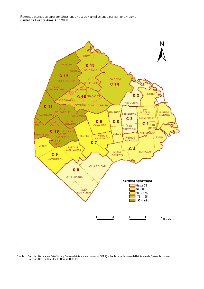 Permisos otorgados para construcciones nuevas y ampliaciones por comuna y barrio. Ciudad de Buenos Aires. Año 2008