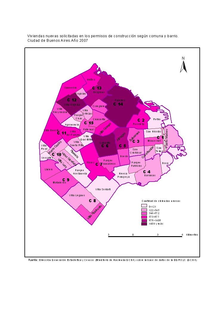 Viviendas nuevas solicitadas en los permisos de construcción según comuna y barrio. Ciudad de Buenos Aires. Año 2007