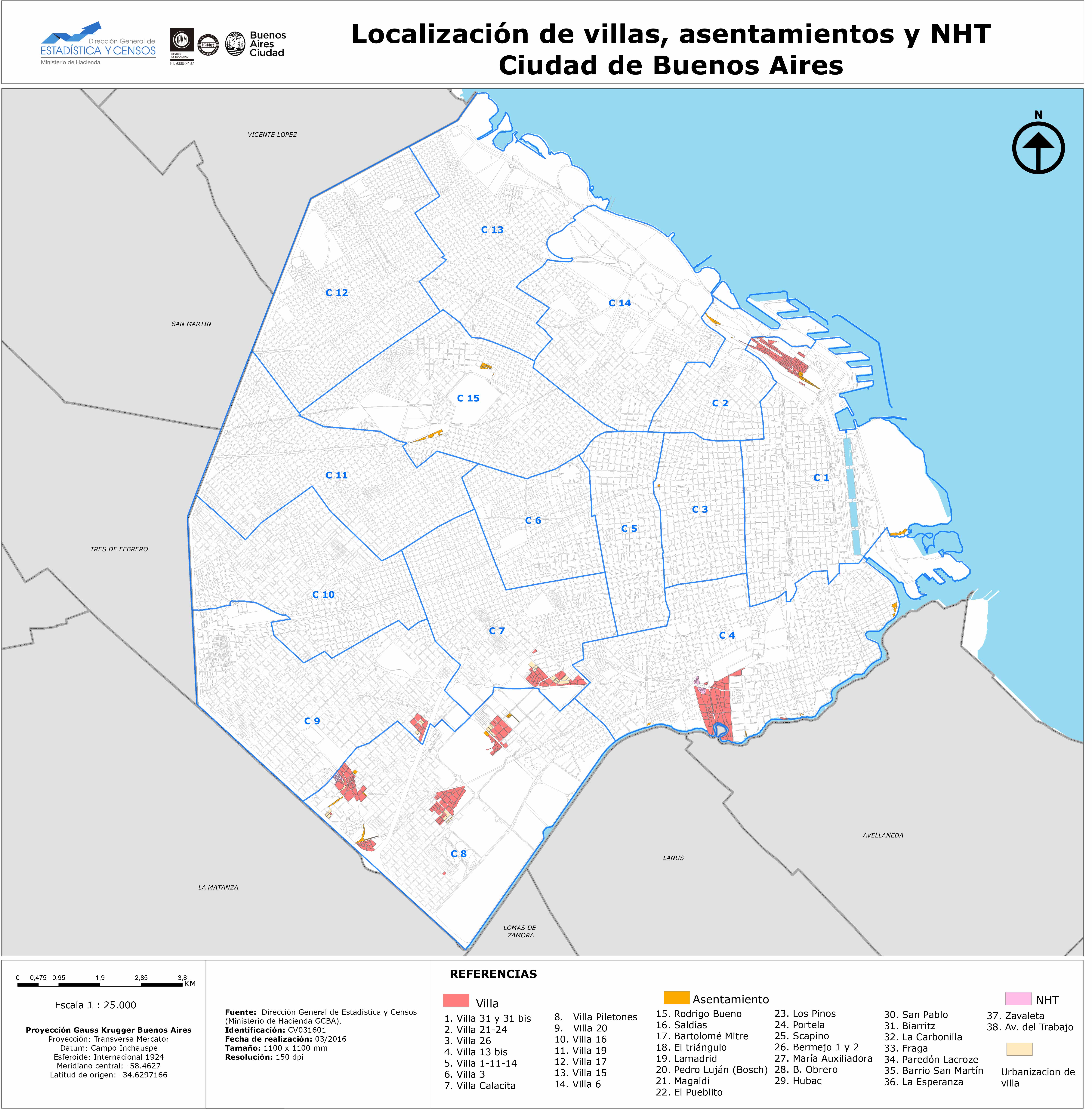 Localización de villas asentamientos y NHT por comuna. Ciudad de Buenos Aires.