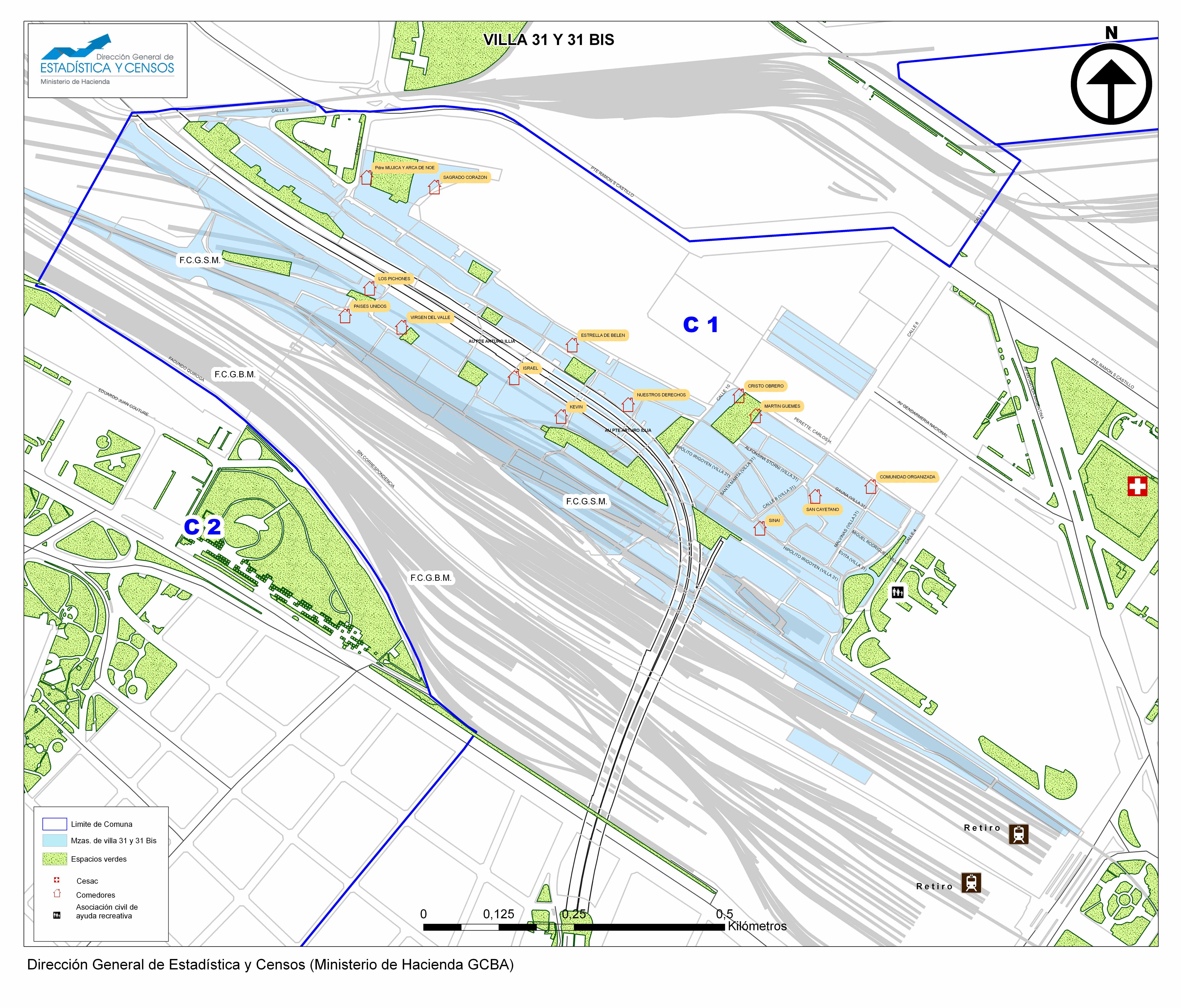 Villa 31-31 BIS con la localizacion de comedores y CESAC