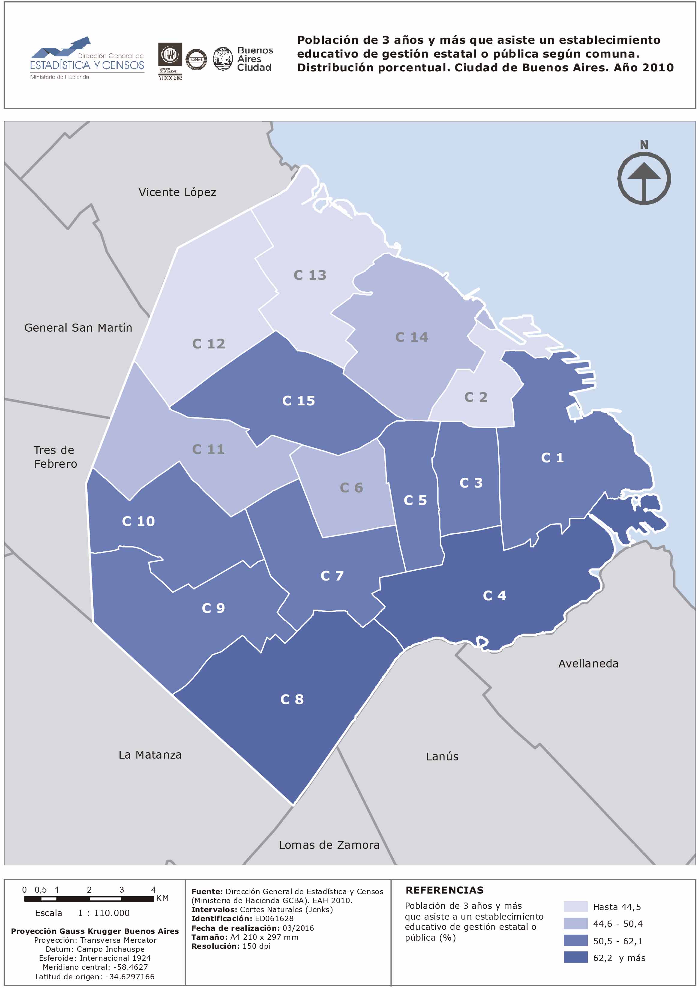 Población de 3 años y más que asiste un establecimiento educativo de gestión estatal o pública por comuna. Distribución porcentual. Ciudad de Buenos Aires. Año 2010