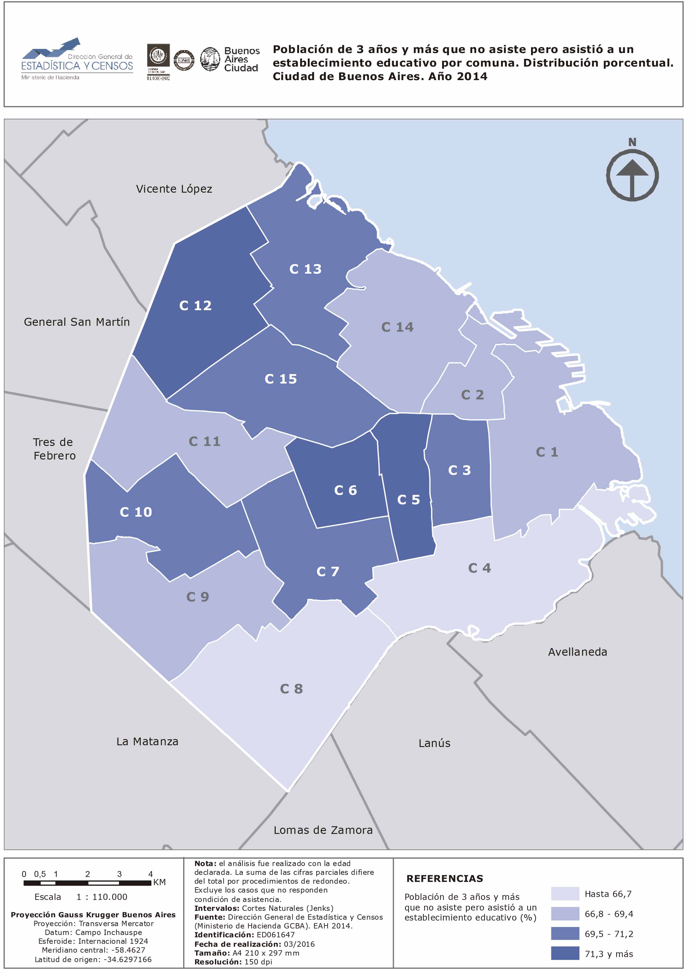 Población de 3 años y más que no asiste pero asistió a un establecimiento educativo por comuna. Distribución porcentual. Ciudad de Buenos Aires. Año 2014