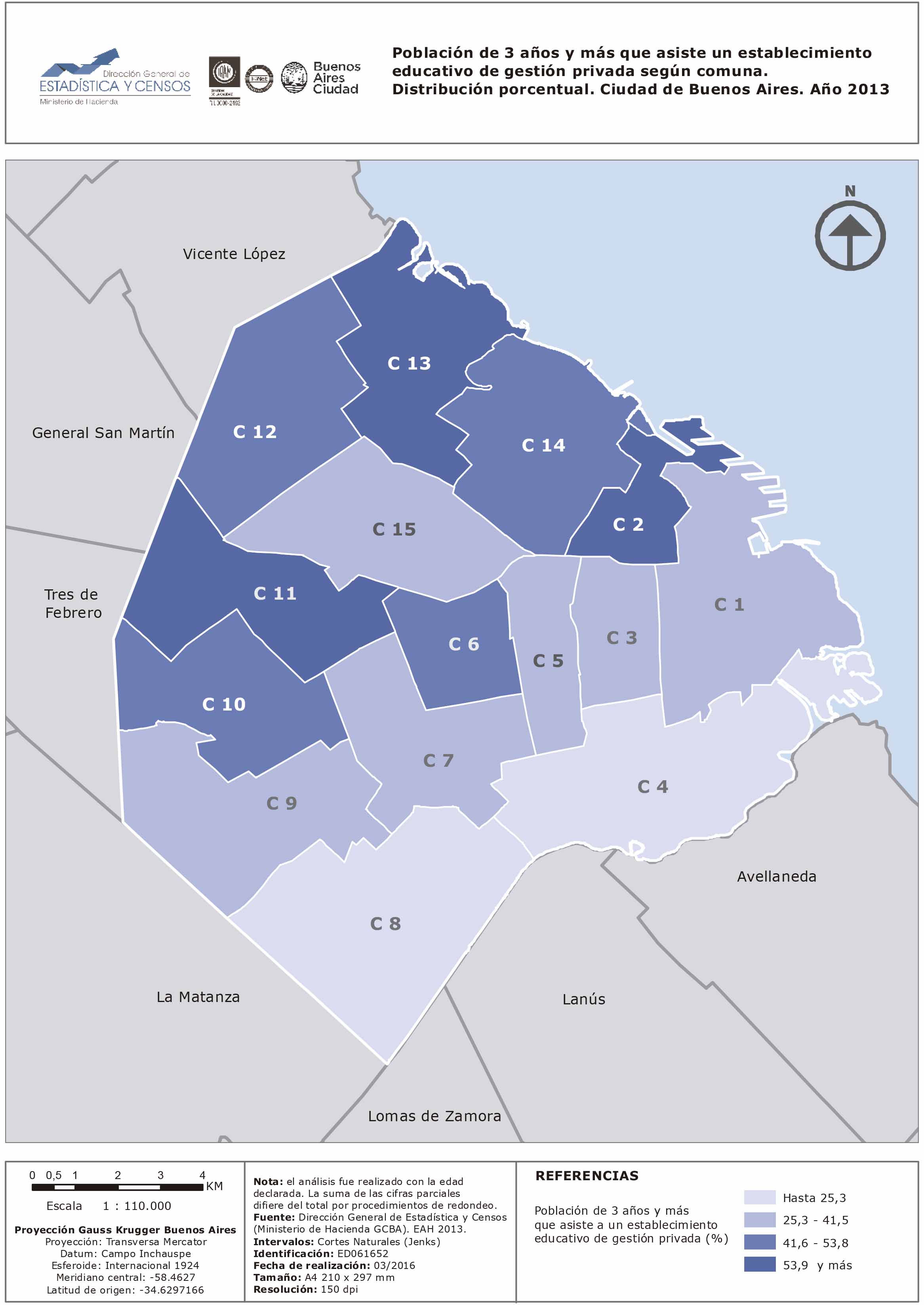 Población de 3 años y más que asiste un establecimiento educativo de gestión privada por comuna. Distribución porcentual. Ciudad de Buenos Aires. Año 2013