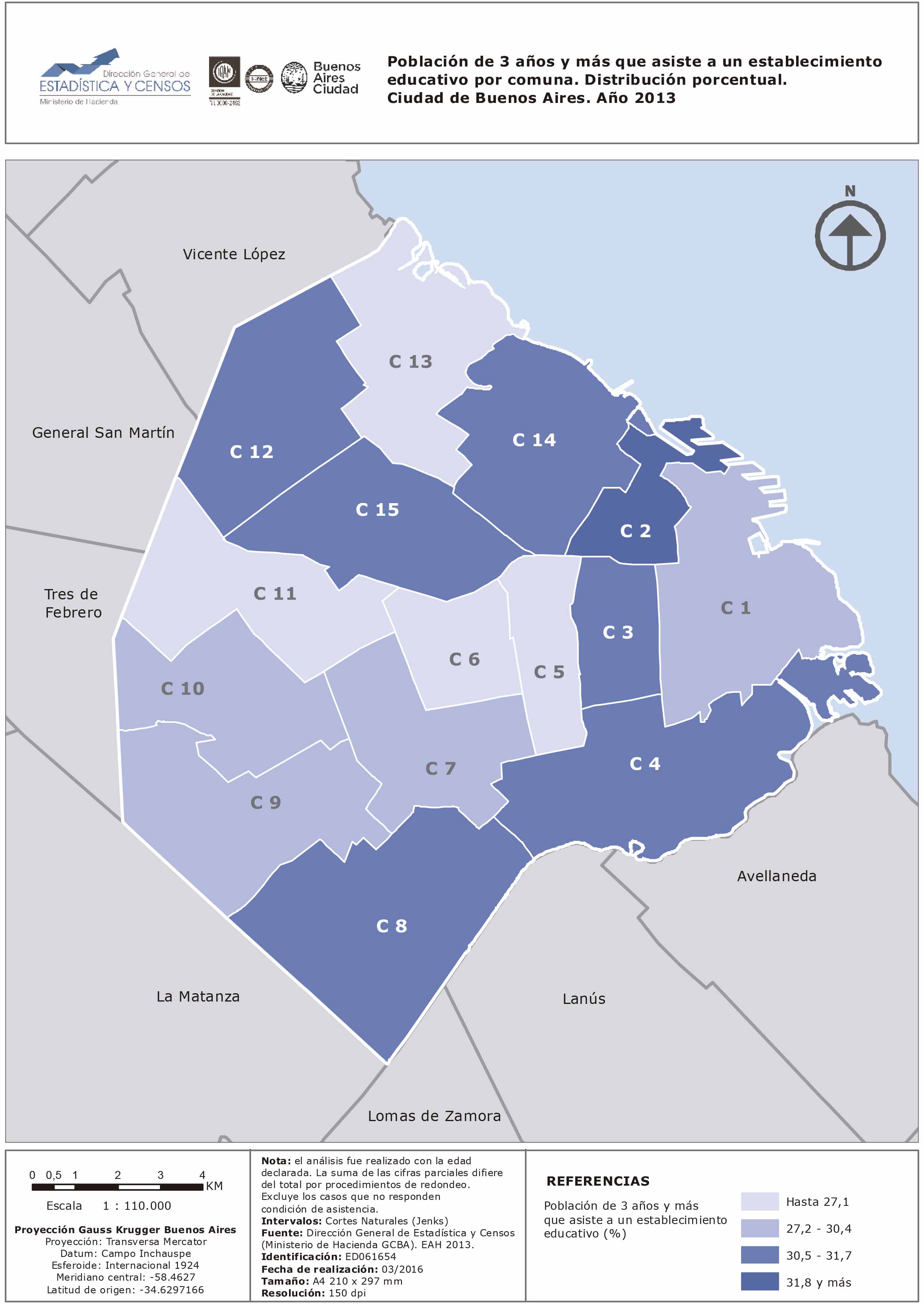 Población de 3 años y más que asiste a un establecimiento educativo por comuna. Distribución porcentual. Ciudad de Buenos Aires. Año 2013