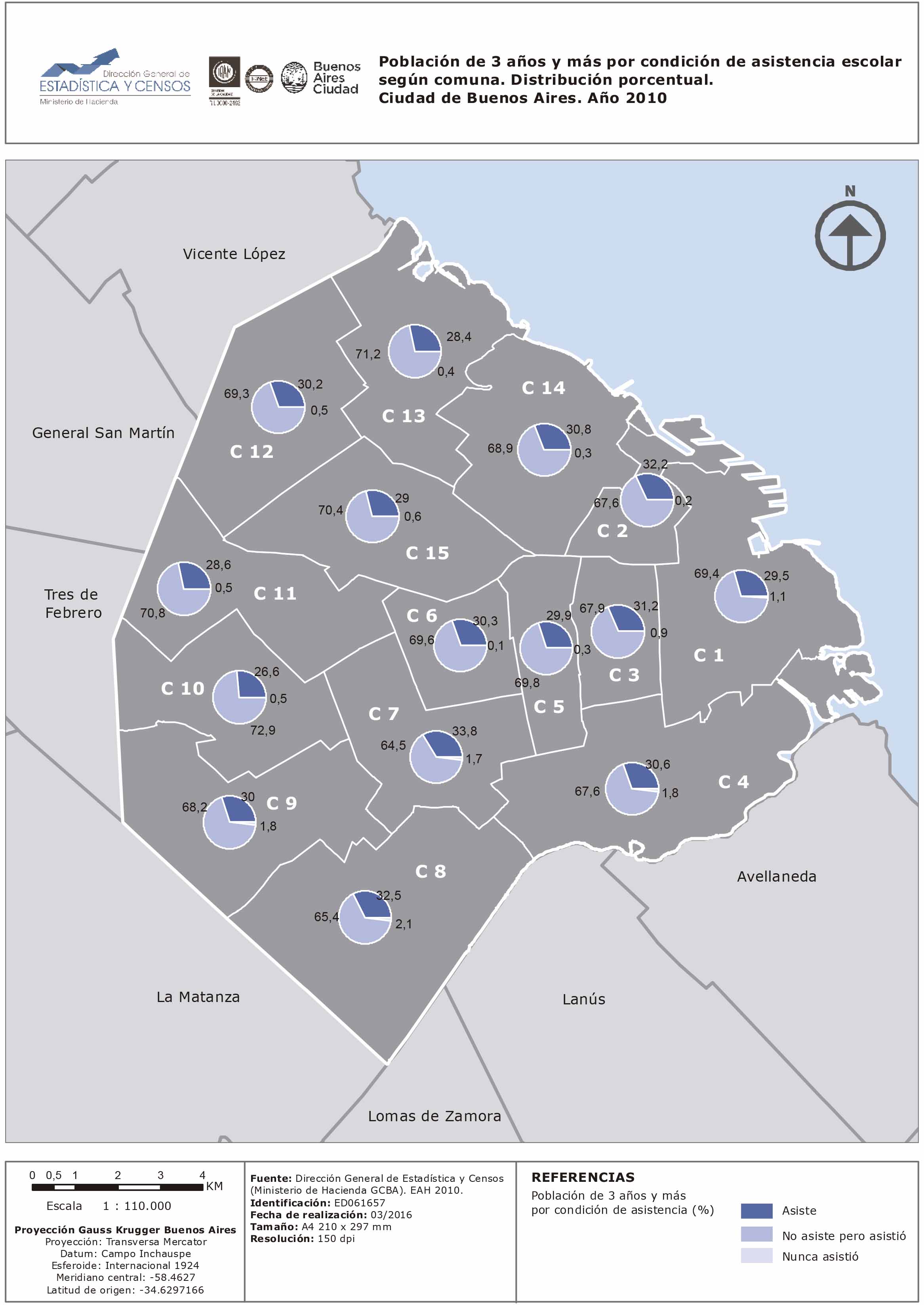 Población de 3 años y más por condición de asistencia escolar según comuna. Distribución porcentual. Ciudad de Buenos Aires. Año 2010