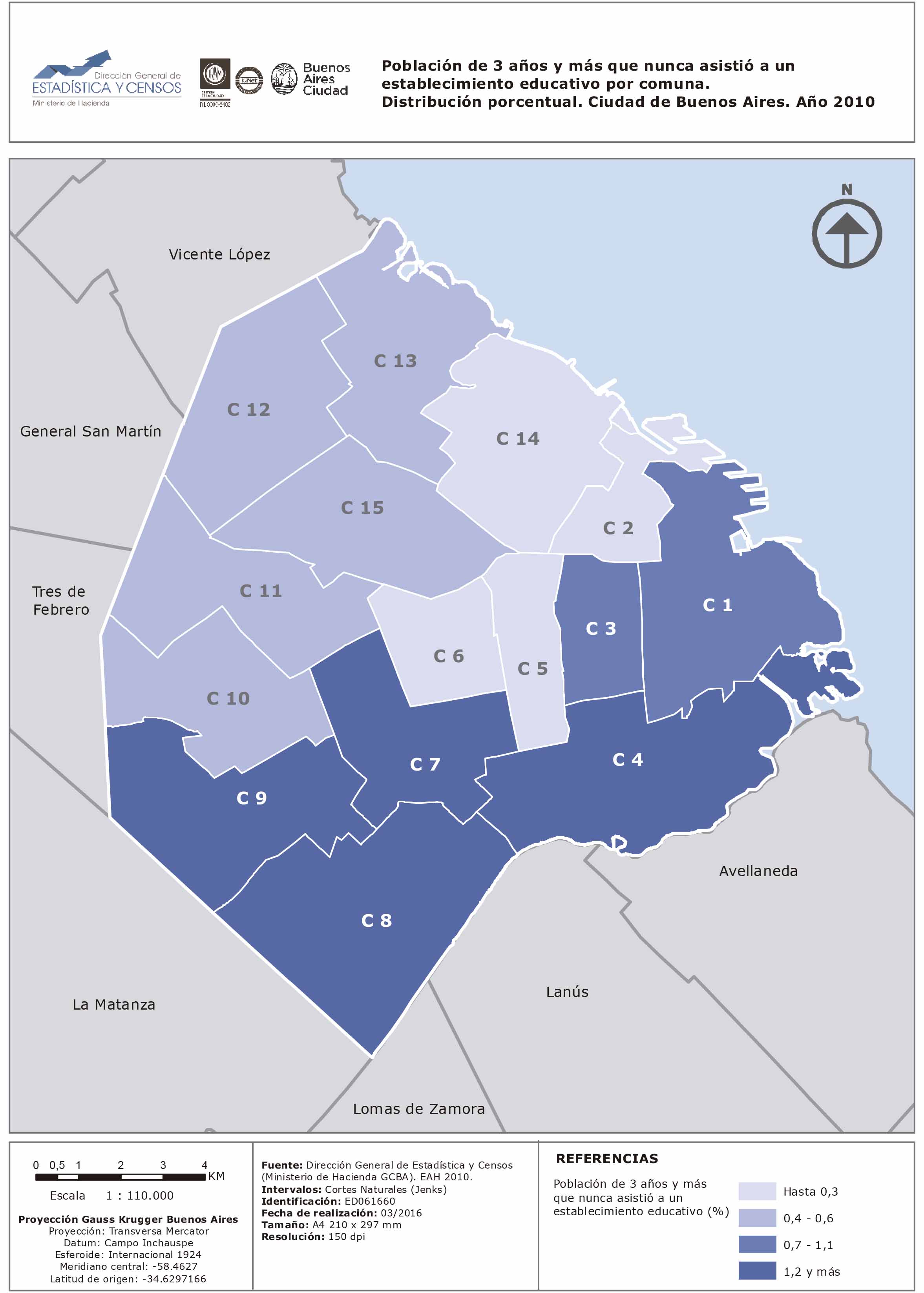 Población de 3 años y más que nunca asistió a un establecimiento educativo por comuna. Distribución porcentual. Ciudad de Buenos Aires. Año 2010