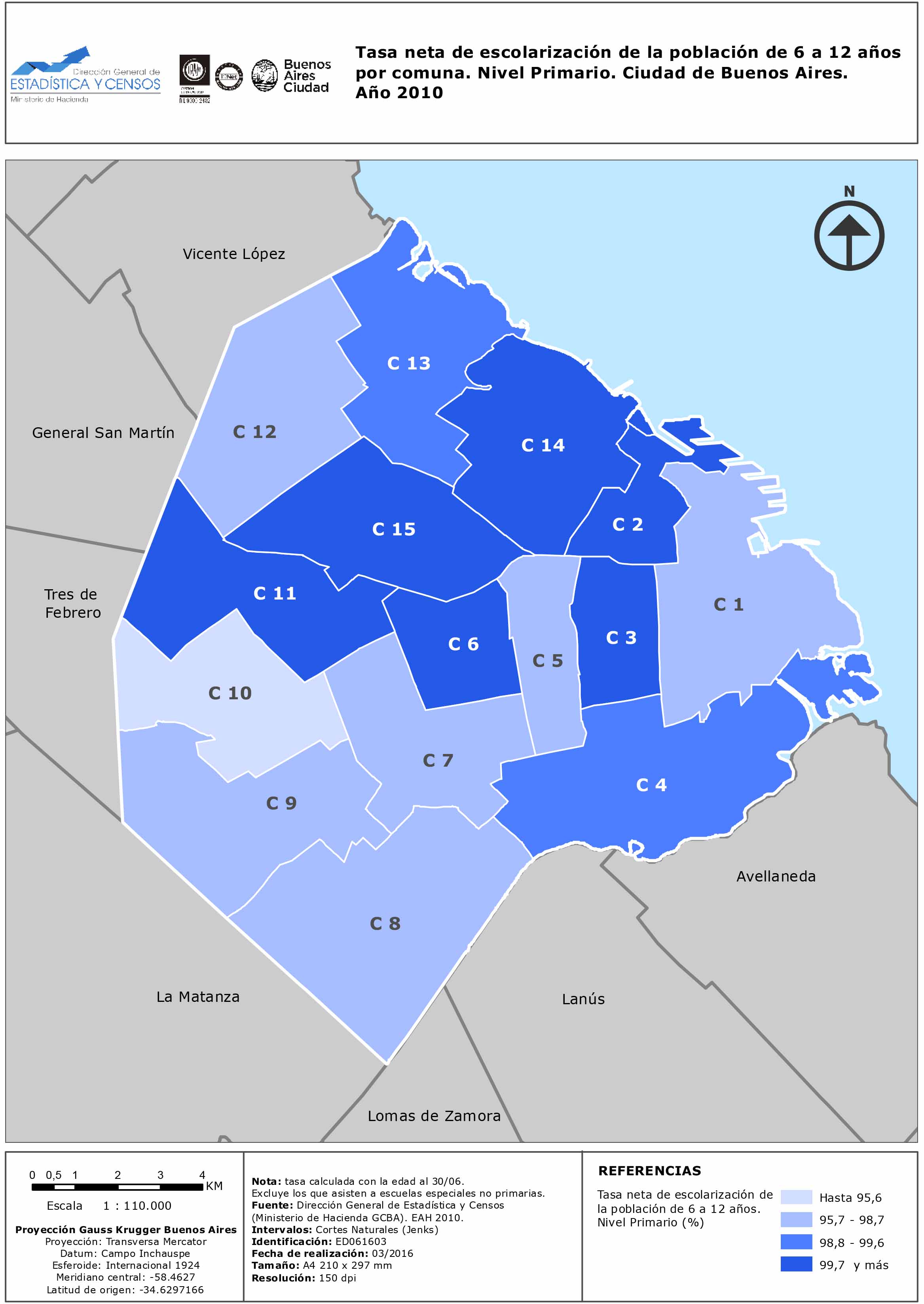 Tasa neta de escolarización de la población de 6 a 12 años por comuna. Nivel Primario. Ciudad de Buenos Aires. Año 2010