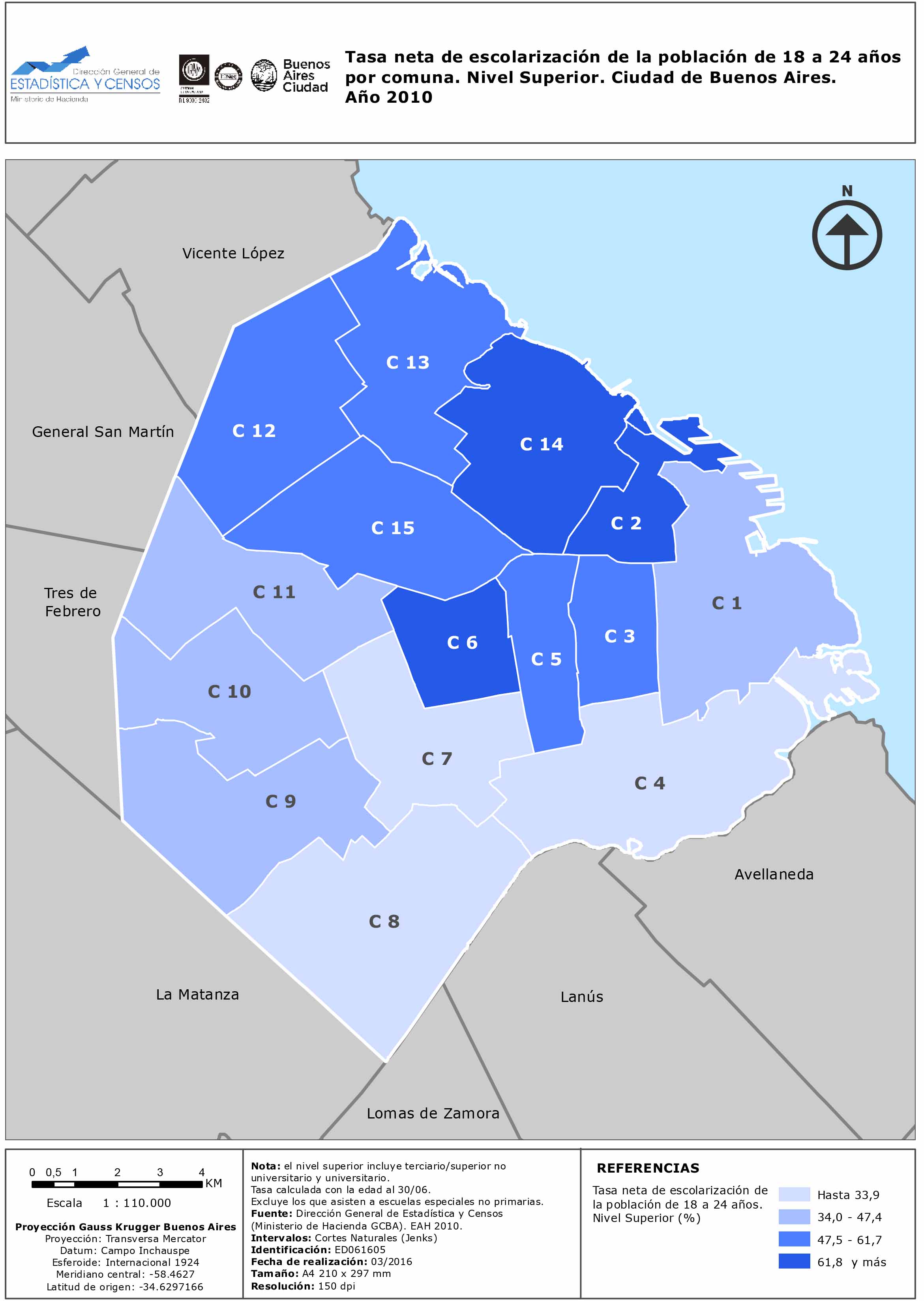 Tasa neta de escolarización de la población de 18 a 24 años por comuna. Nivel Superior. Ciudad de Buenos Aires. Año 2010