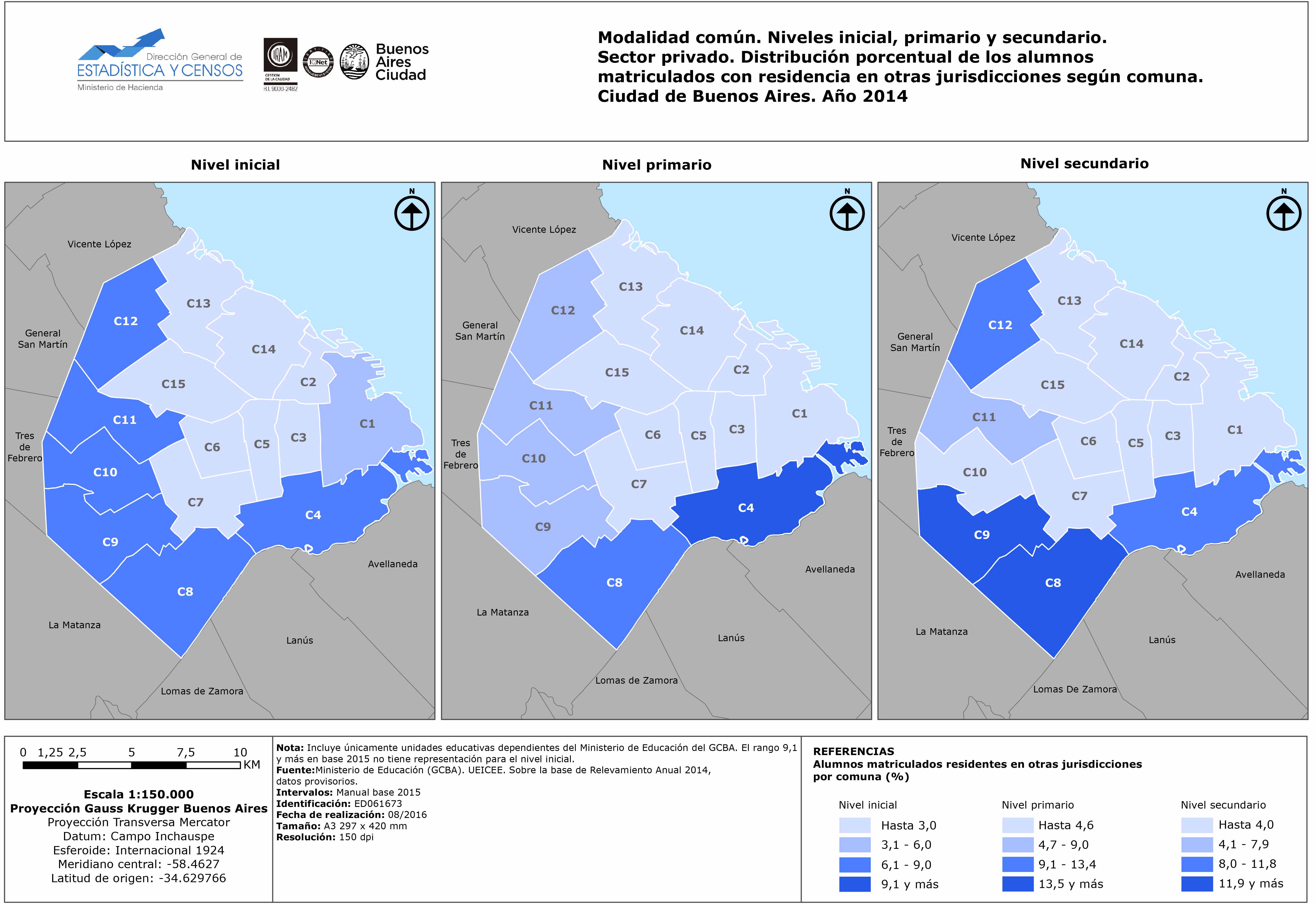 Modalidad común. Niveles inicial, primario y secundario. Sector privado. Distribución porcentual de los alumnos matriculados con residencia en otras jurisdicciones según comuna. Ciudad de Buenos Aires. Año 2014
