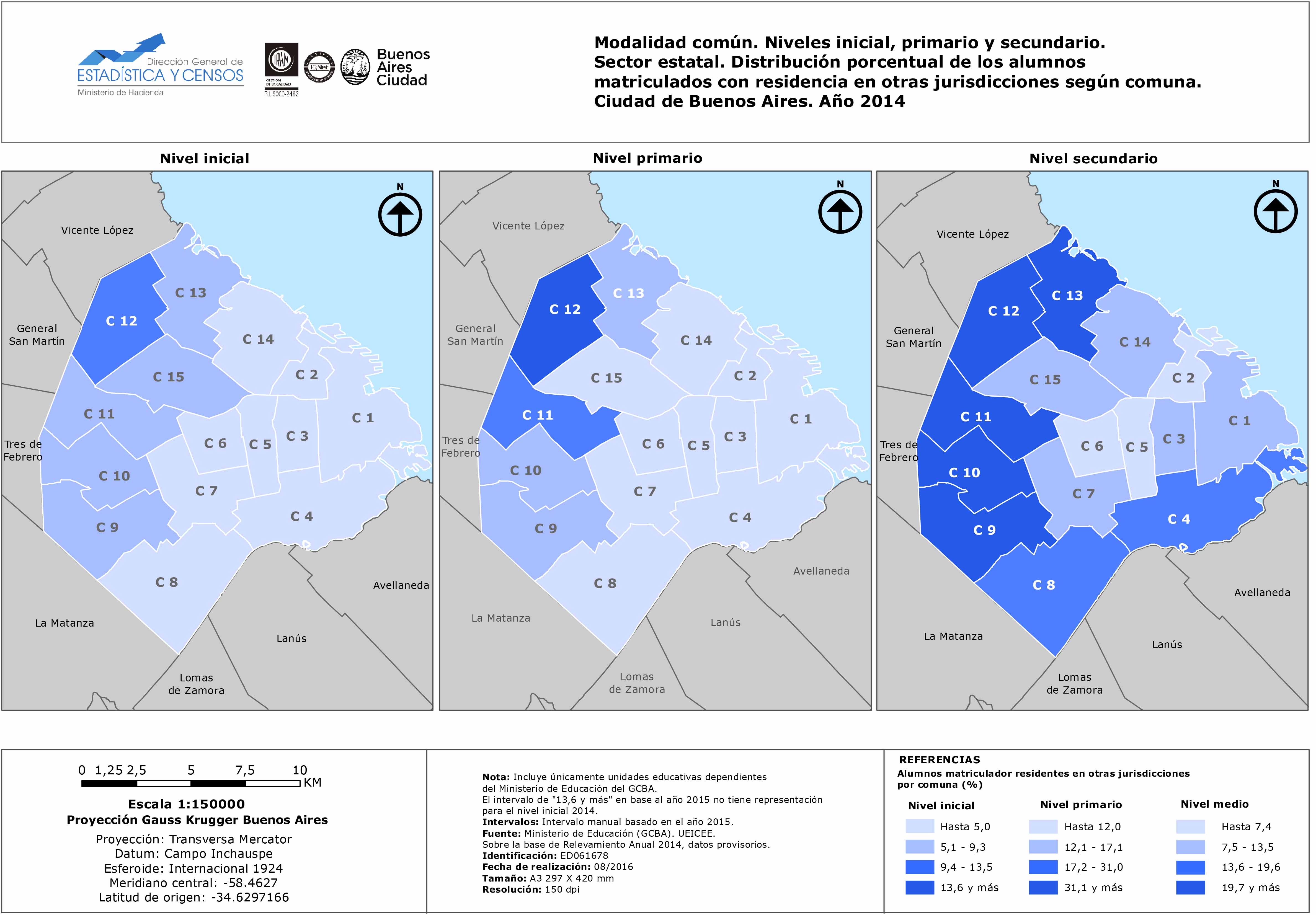 Modalidad común. Niveles inicial, primario y secundario. Sector estatal. Distribución porcentual de los alumnos matriculados con residencia en otras jurisdicciones según comuna. Ciudad de Buenos Aires. Año 2014