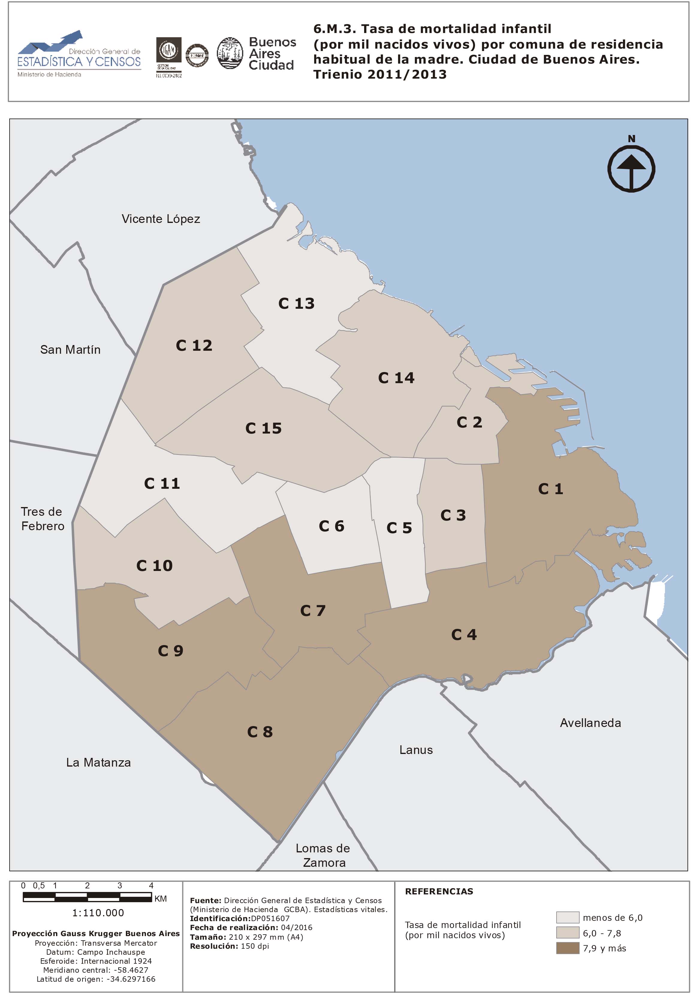 Tasa de mortalidad infantil (por mil nacidos vivos) por comuna de residencia habitual de la madre. Ciudad de Buenos Aires. Trienio 2011/2013