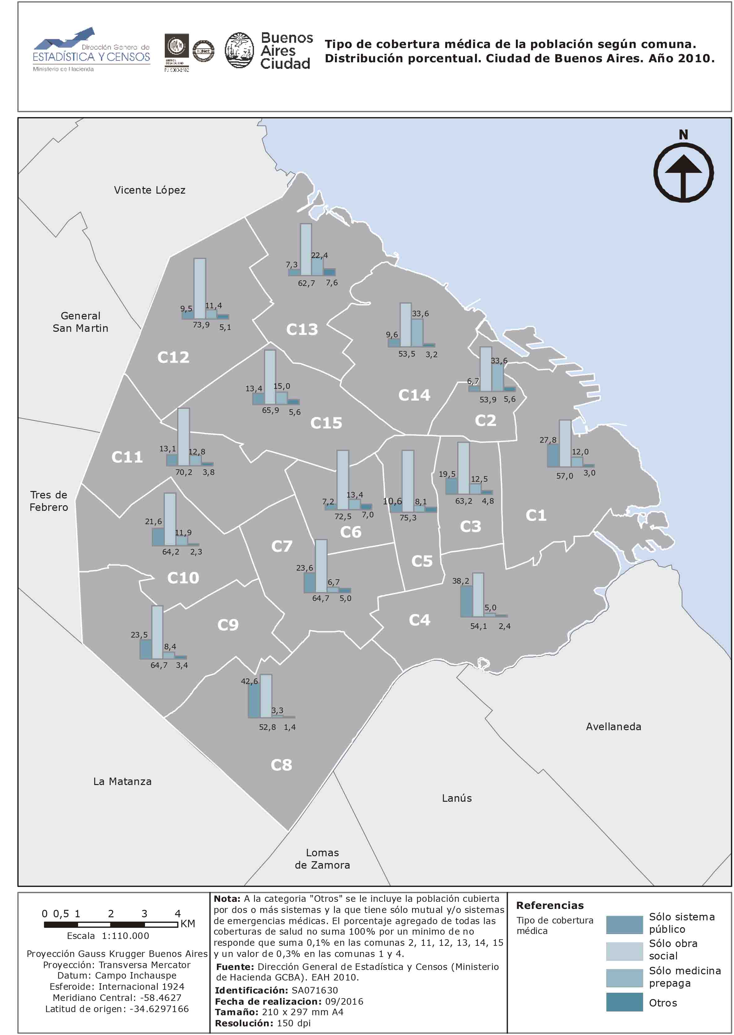 Tipo de cobertura médica de la población según comuna. Distribución porcentual. Ciudad de Buenos Aires. Año 2010.
