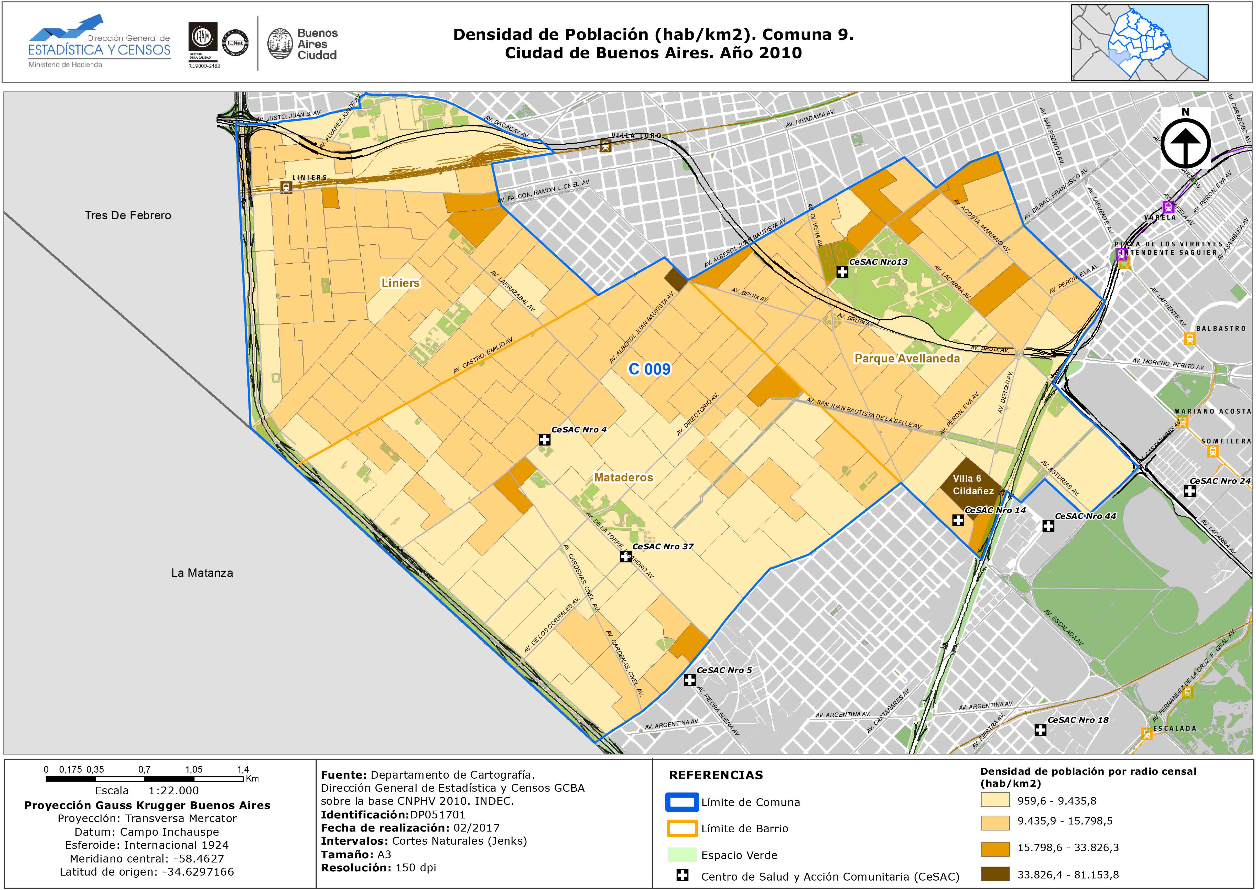 Densidad de población de la comuna 09. Ciudad de Buenos Aires. Año 2010
