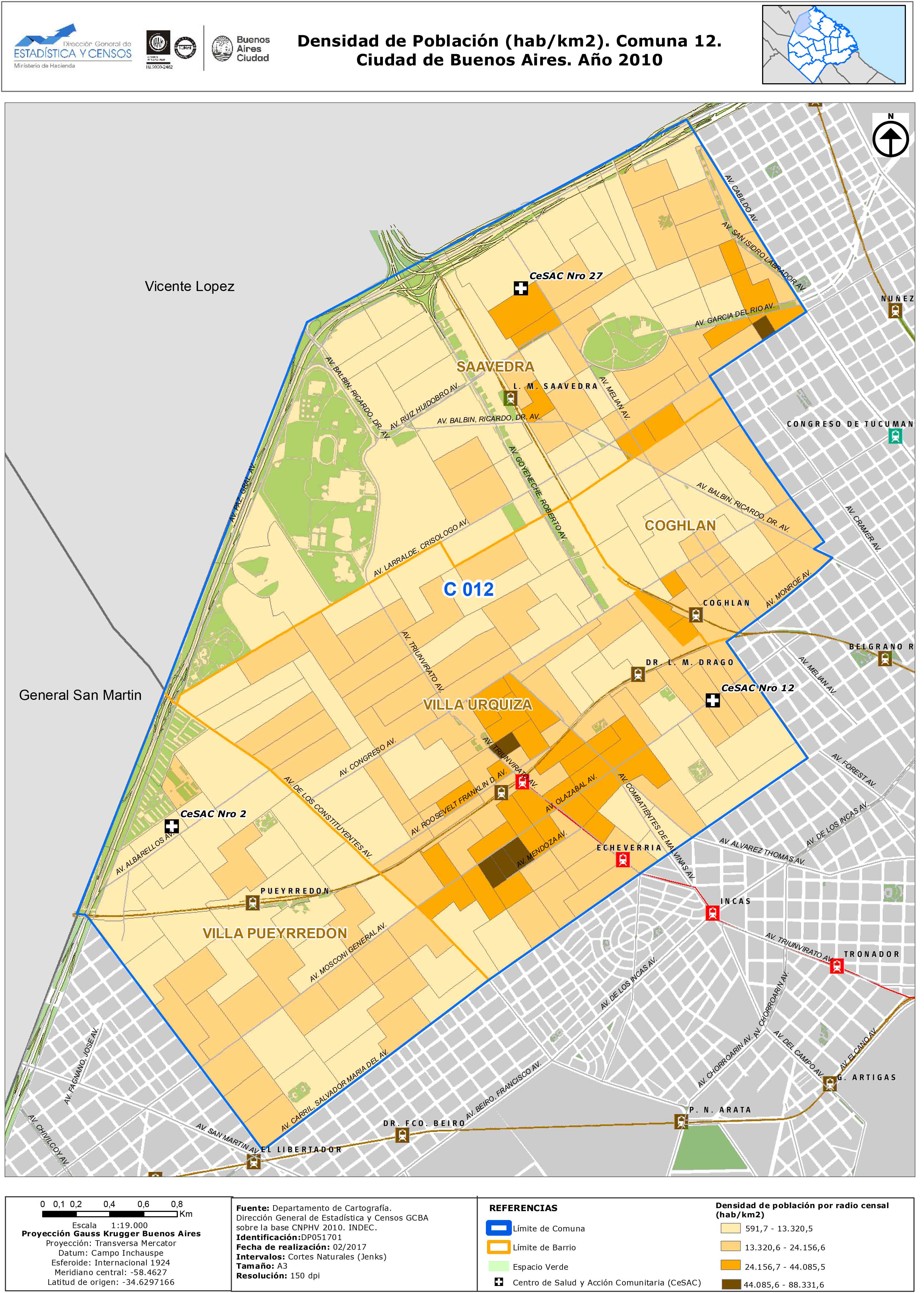 Densidad de población de la comuna 12. Ciudad de Buenos Aires. Año 2010