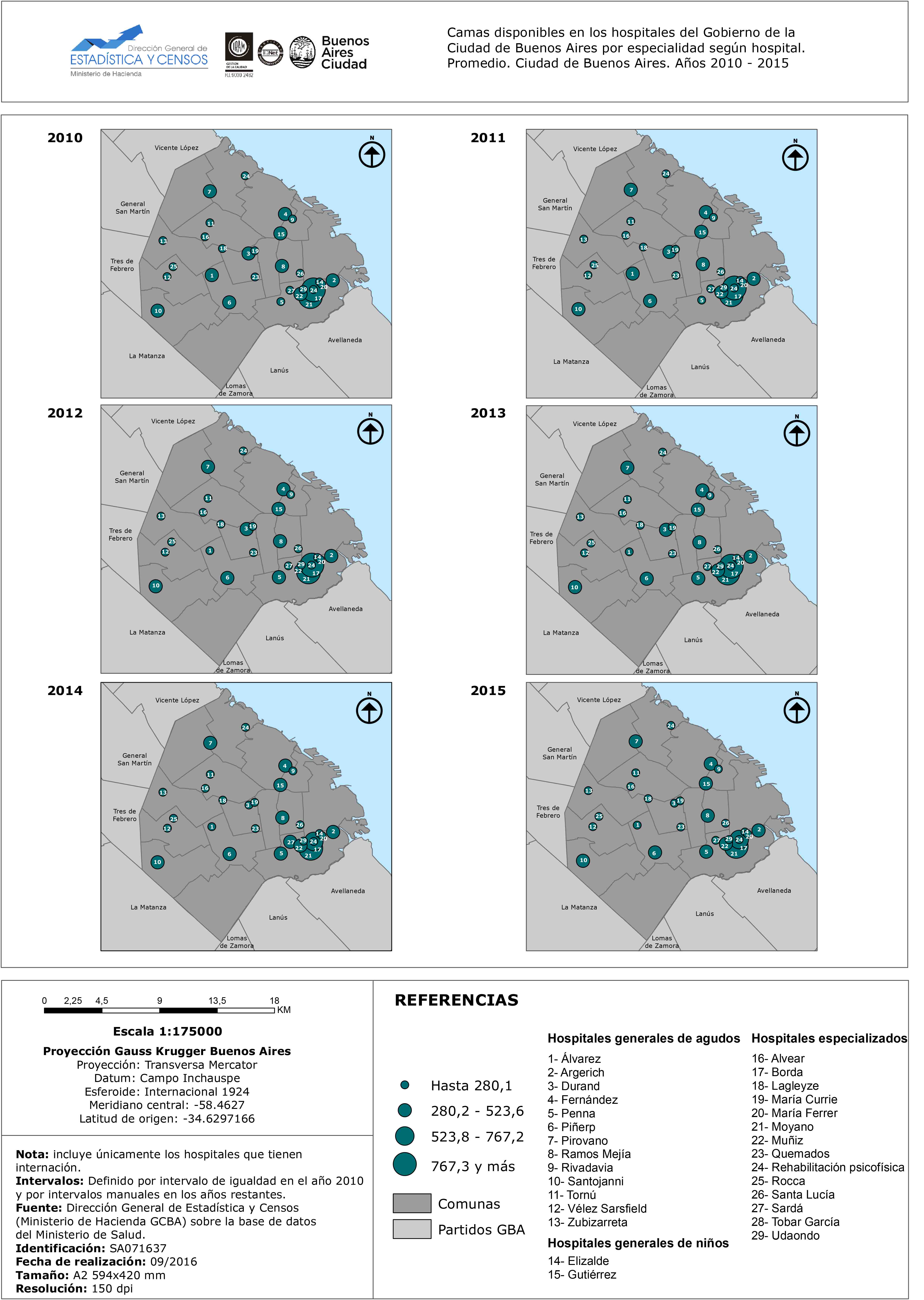 Camas disponibles en los hospitales del Gobierno de la Ciudad de Buenos Aires por especialidad según hospital. Promedio. Ciudad de Buenos Aires. Años 2010 – 2015