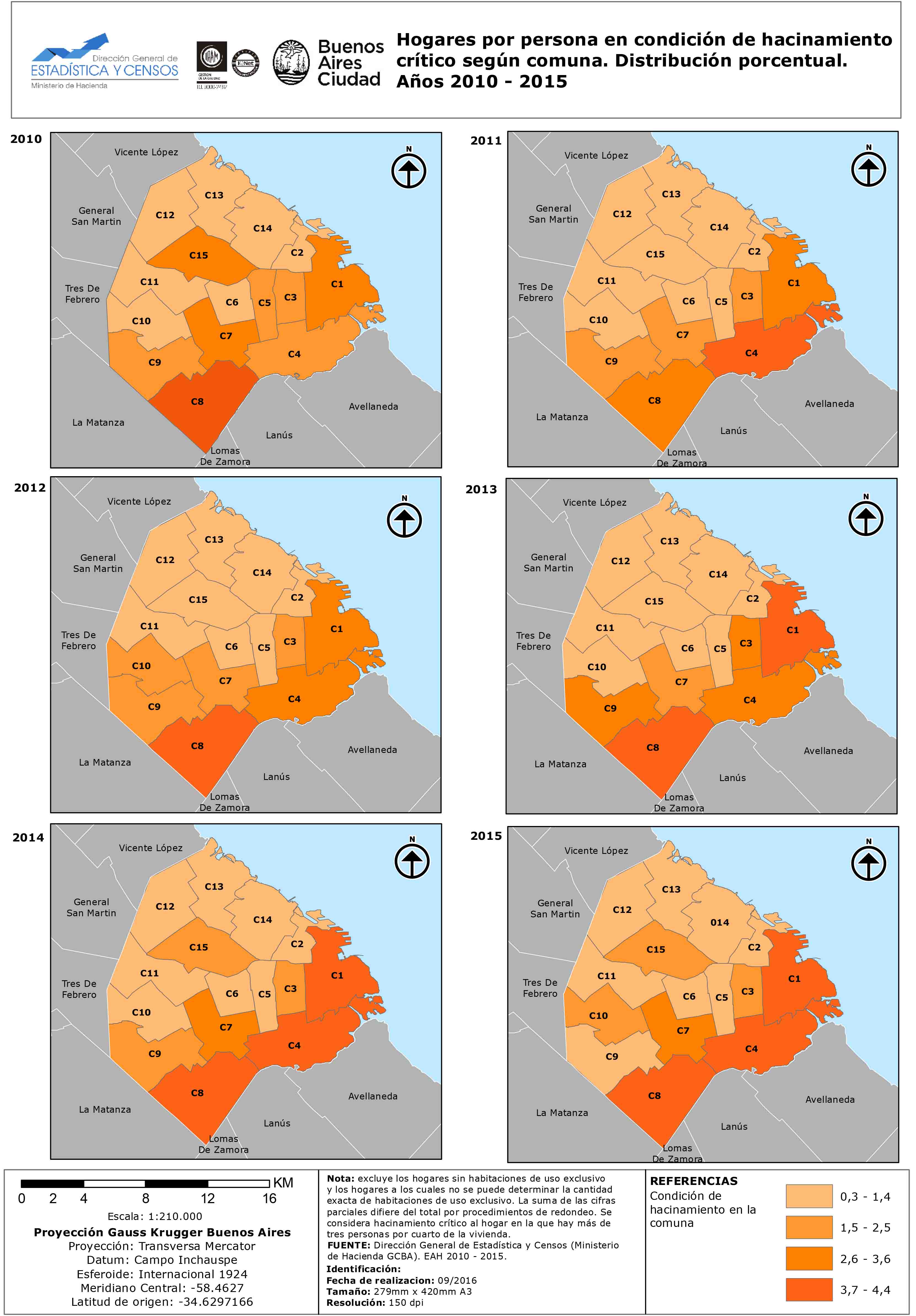 Hogares por persona en condición de hacinamiento crítico según comuna. Distribución porcentual. Años 2010 – 2015