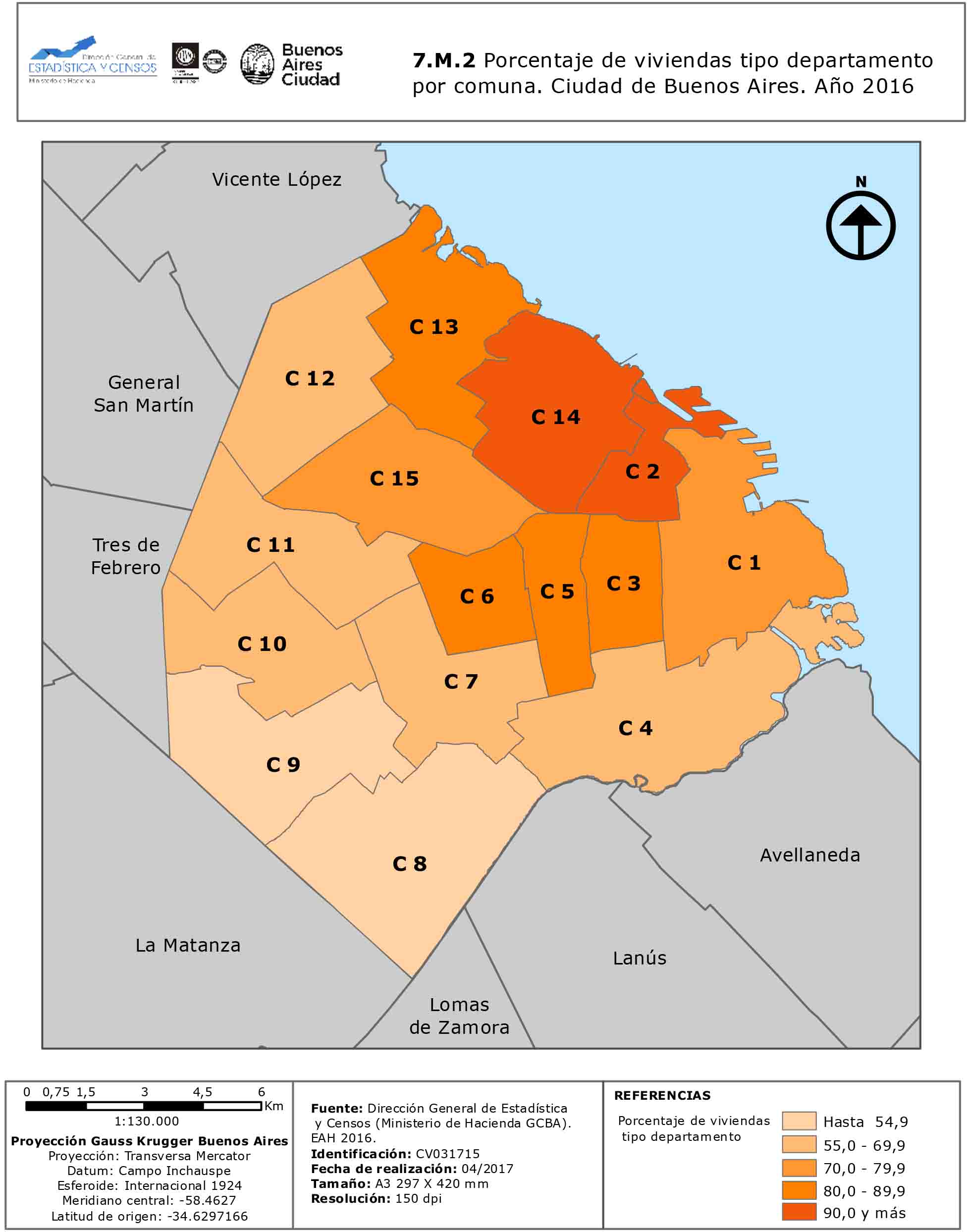 Porcentaje de viviendas tipo departamento por comuna. Ciudad de Buenos Aires. Año 2016