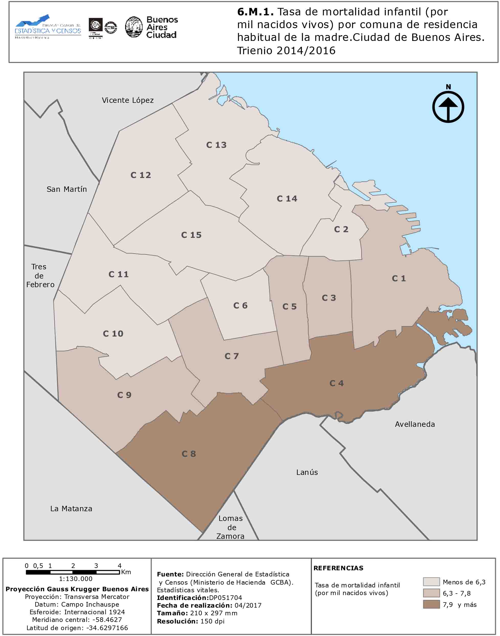 Tasa de mortalidad infantil (por mil nacidos vivos) por comuna de residencia habitual de la madre. Ciudad de Buenos Aires. Trienio 2014/2016