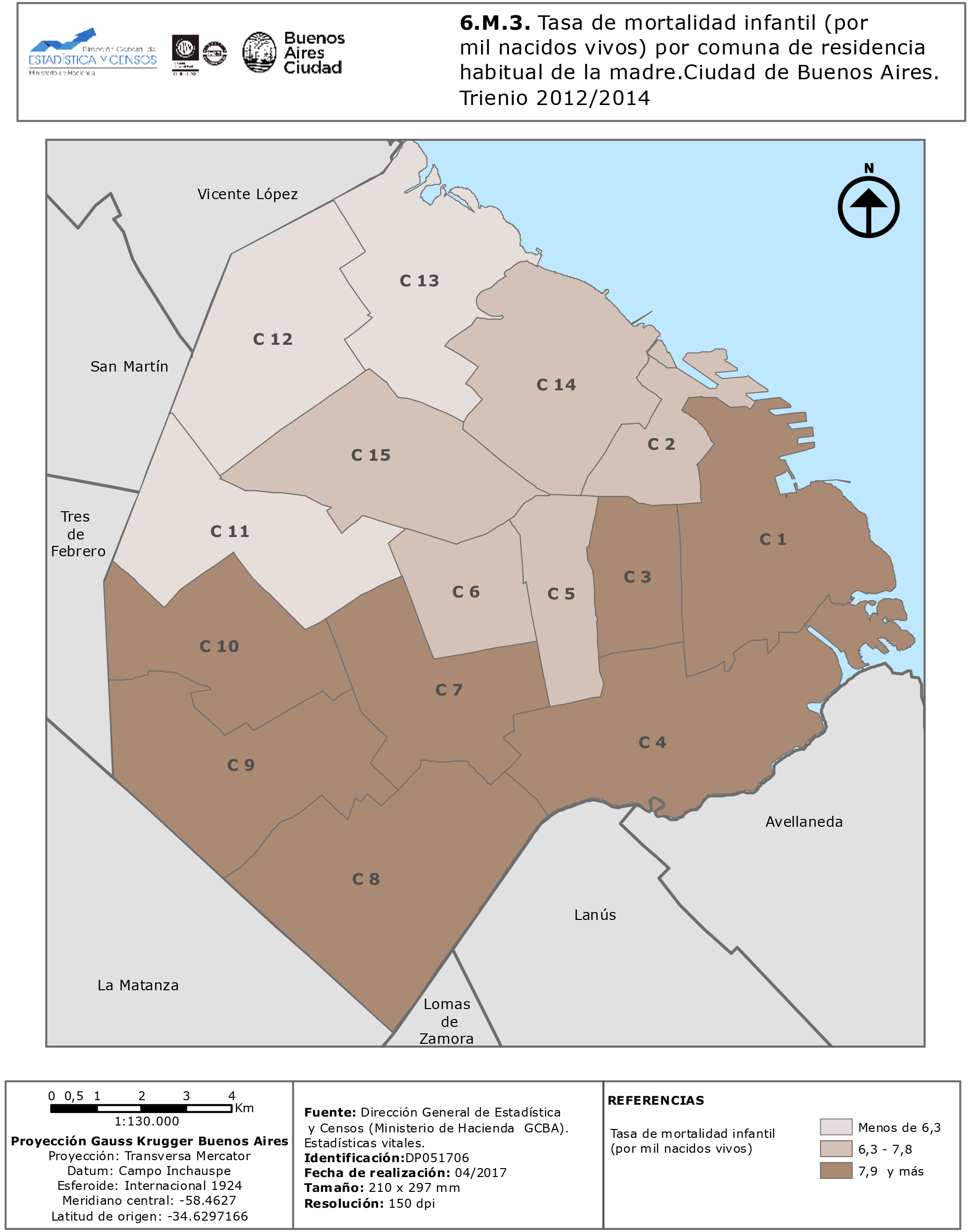 Tasa de mortalidad infantil (por mil nacidos vivos) por comuna de residencia habitual de la madre. Ciudad de Buenos Aires. Trienio 2012/2014