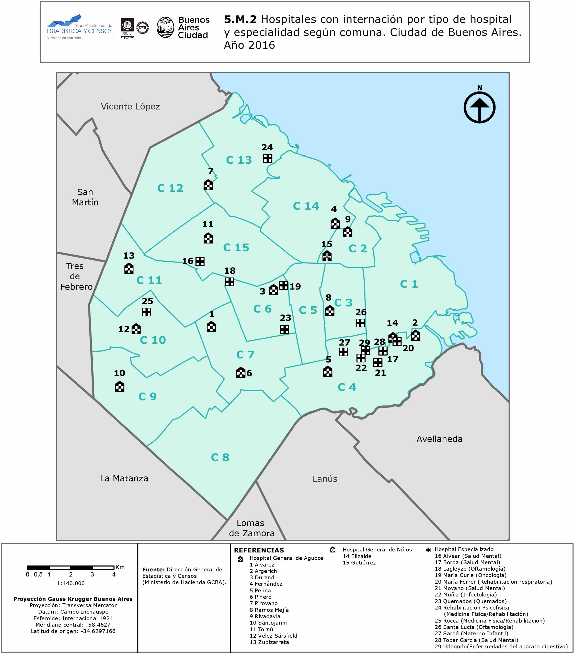 Hospitales con internación por tipo de Hospital y especialidad según comuna. Ciudad de Buenos Aires. Año 2016