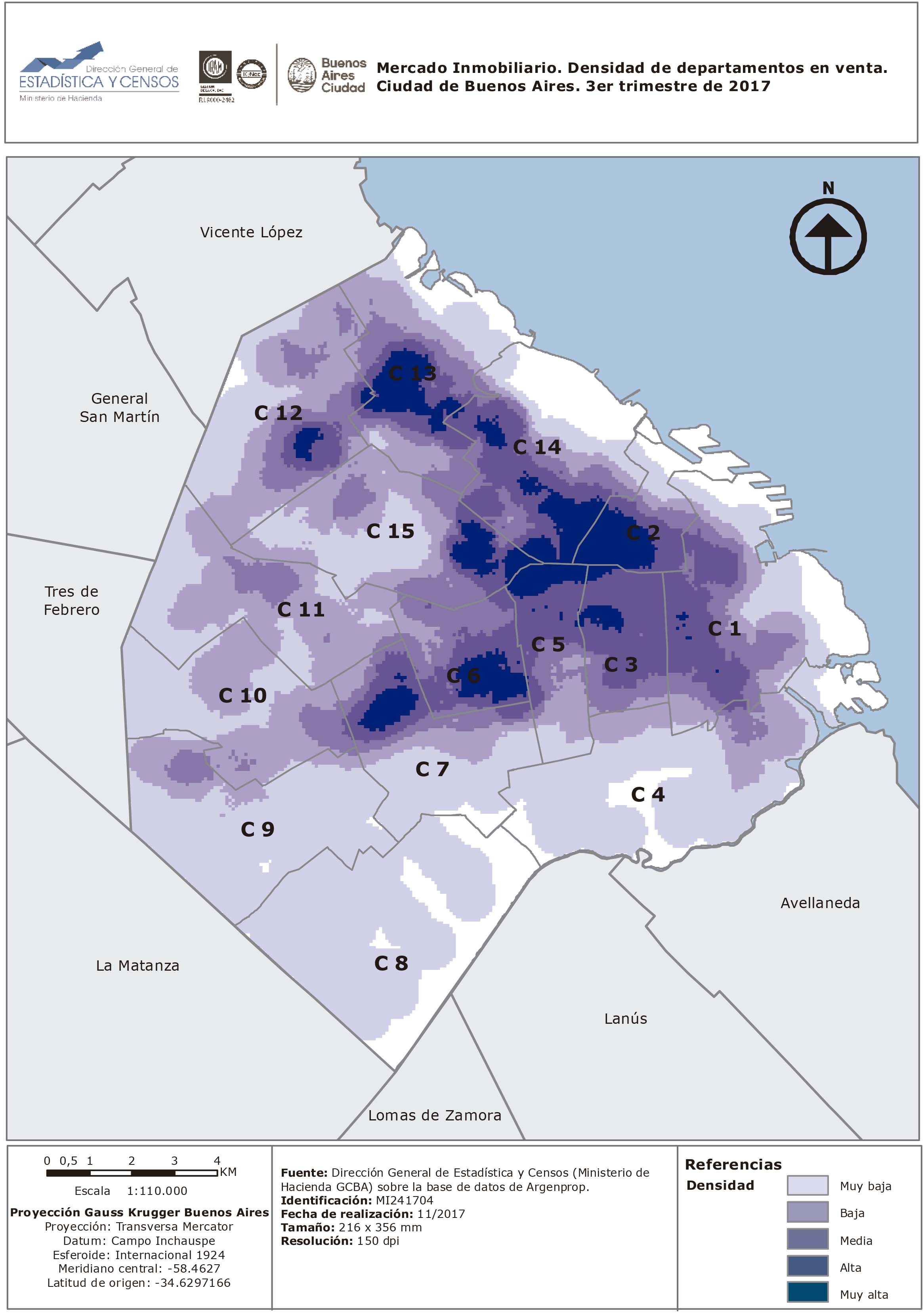 Mercado Inmobiliario. Densidad de departamentos en venta. Ciudad de Buenos Aires. 3er trimestre de 2017