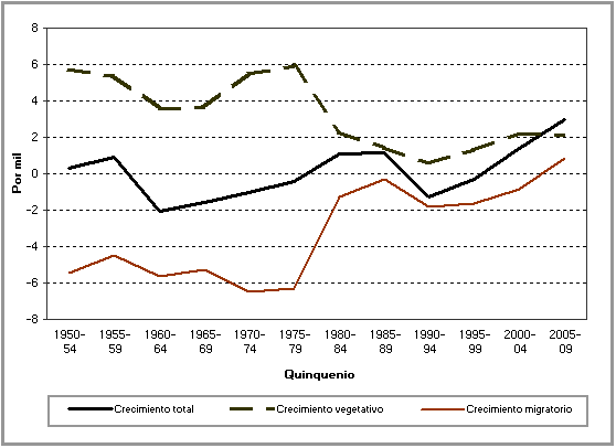 Tasas de crecimiento total, vegetativo y migratorio medio anual,