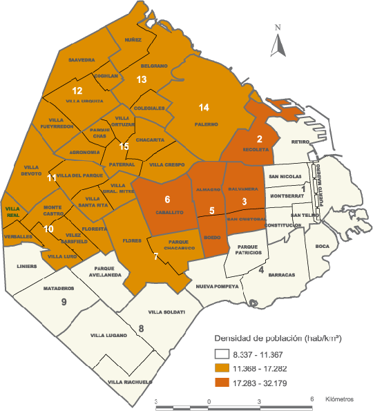 Densidad de población (hab/km2) según comuna. Ciudad de Buenos Aires. 1º de julio de 2007