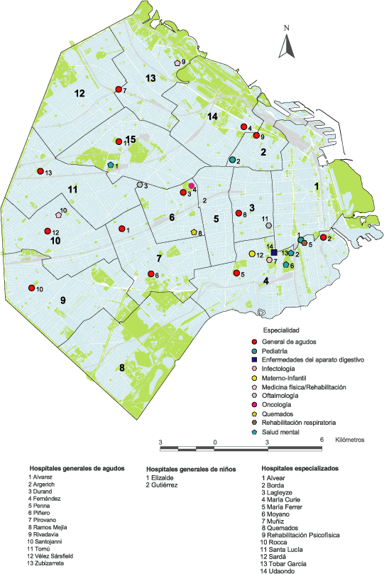 Hospitales con internación por tipo y especialidad según comuna. Ciudad de Buenos Aires. Año 2007