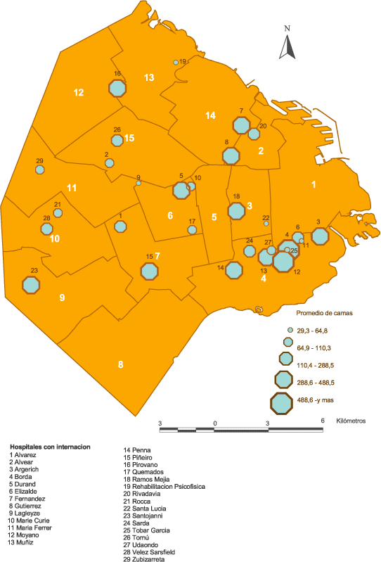 Promedio de camas disponibles en hospitales del Gobierno de la Ciudad de Buenos Aires según comuna. Ciudad de Buenos Aires. Año 2007