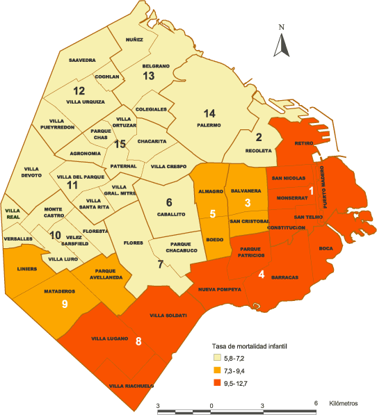 Tasa de mortalidad infantil (por mil nacidos vivos) según comuna. Ciudad de Buenos Aires. Bienio 2006 / 2007