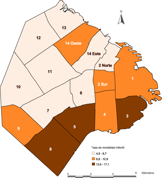 Tasa de mortalidad infantil (por mil nacidos vivos) según Centro de Gestión y Participación (CGP). Ciudad de Buenos Aires. Trienio 2001/2003