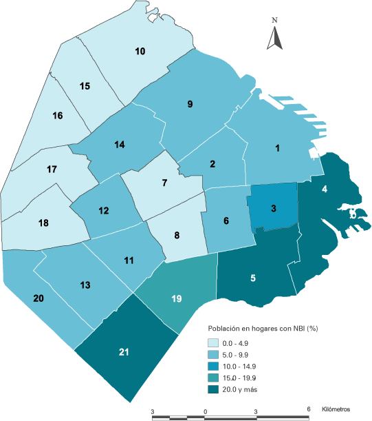 Población en hogares con Necesidades Básicas Insatisfechas (NBI) por Distrito Escolar.