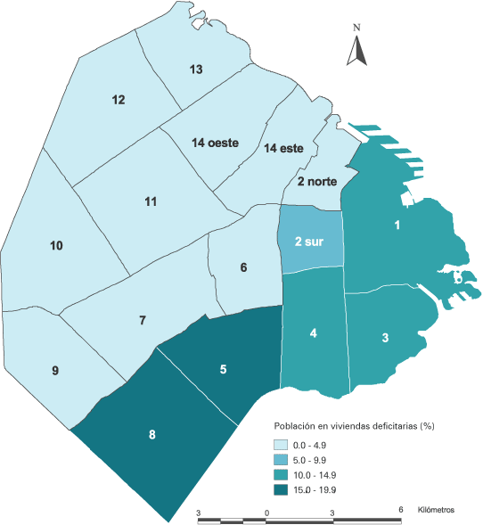 Población en viviendas deficitarias por Centro de Gestión y Participación. Ciudad de Buenos Aires. Año 2001