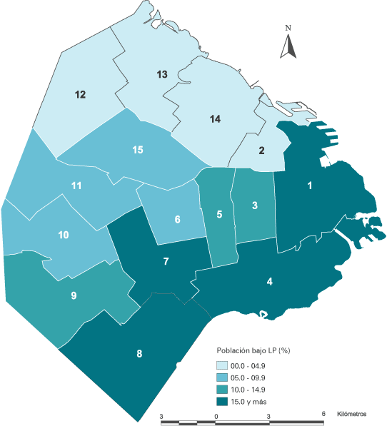Porcentaje de población por debajo de la línea de pobreza según Comuna. Ciudad de Buenos Aires. Año 2006
