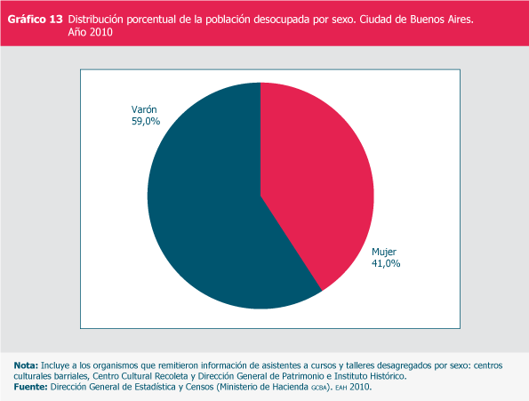 Distribución porcentual de la población desocupada por sexo. Ciudad de Buenos Aires. Año 2010