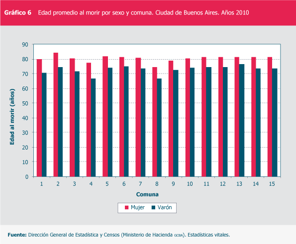 Edad promedio al morir por sexo y comuna. Ciudad de Buenos Aires.