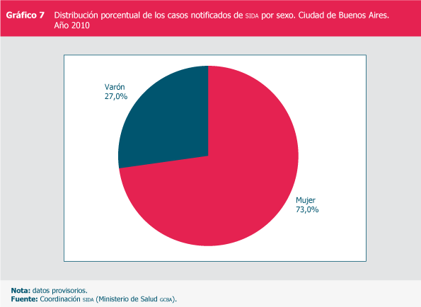 Distribución porcentual de los casos notificados de SIDA por sexo. Ciudad de Buenos Aires.