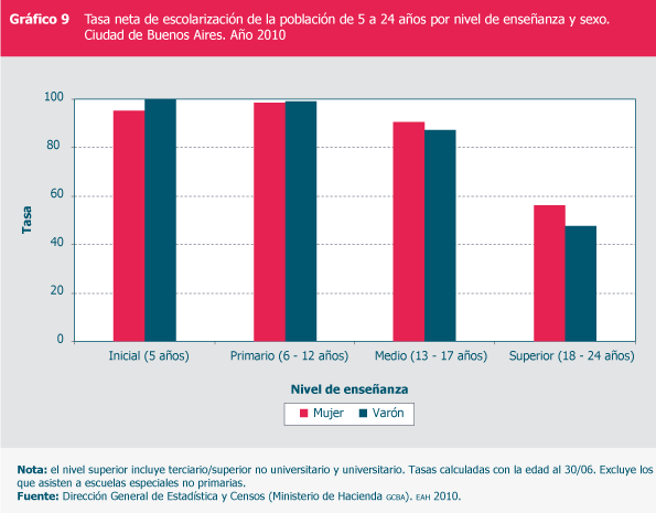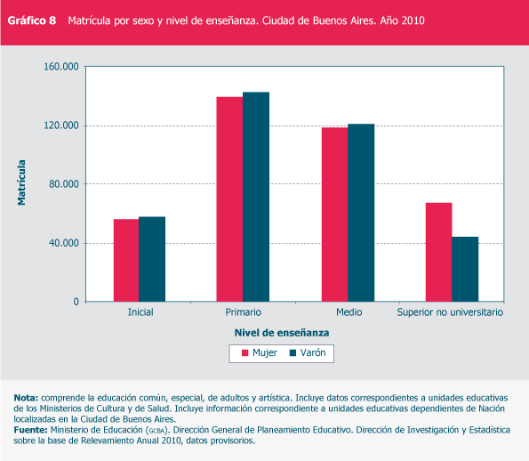 Matrícula por sexo y nivel de enseñanza. Ciudad de Buenos Aires. Año 2010