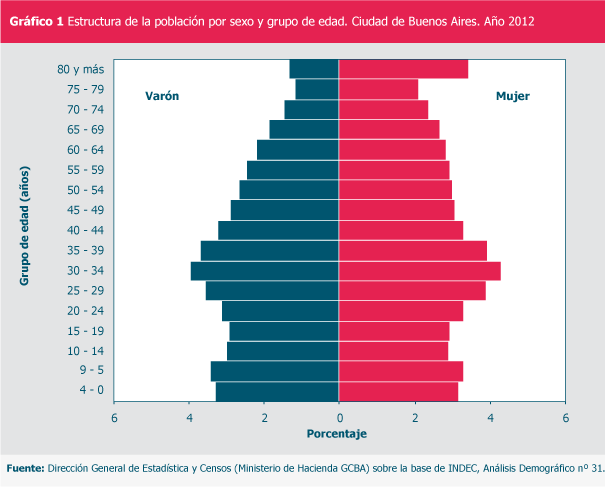 Estructura de la población por sexo y grupo de edad. Ciudad de Buenos Aires. Año 2012