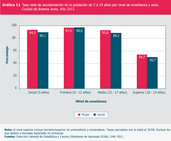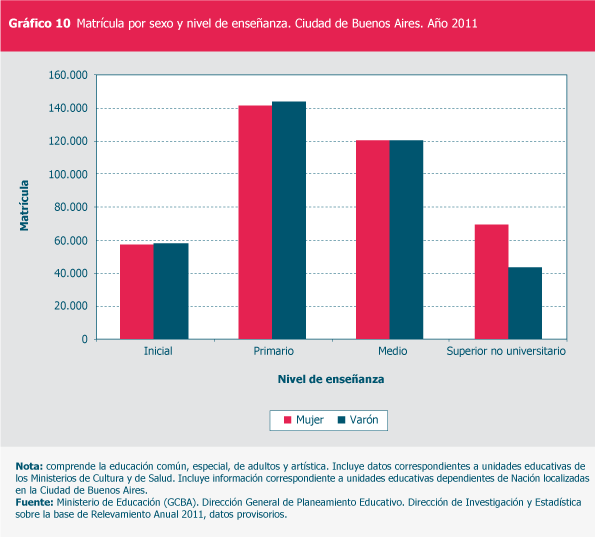 Matrícula por sexo y nivel de enseñanza. Ciudad de Buenos Aires. Año 2011