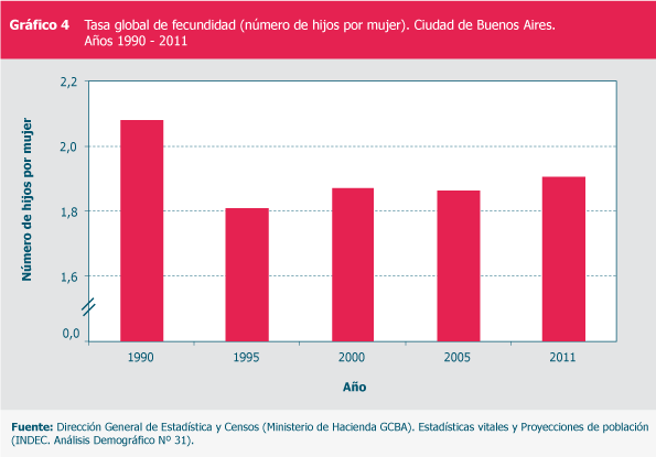 Tasa global de fecundidad (número de hijos por mujer). Ciudad de Buenos Aires. Años 1990 - 2011