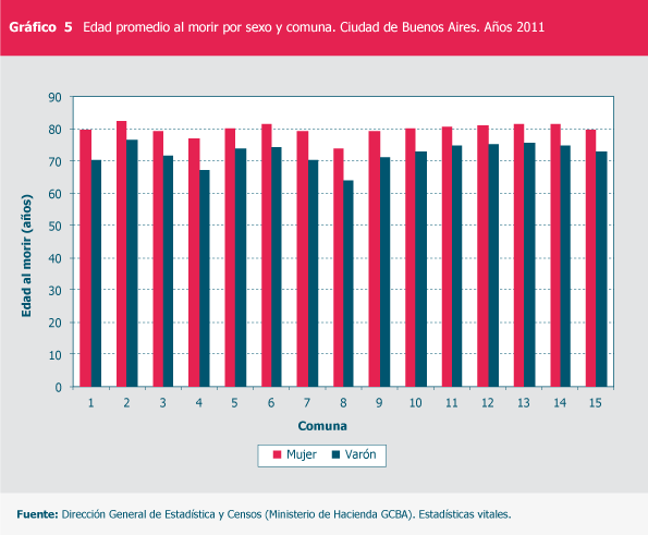 Edad promedio al morir por sexo y comuna. Ciudad de Buenos Aires. Año 2011